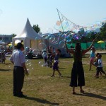 Zwischen tratitionellen Markt und Musikbühne zu afrikanischen Klängen sind die Zauberblasen geflogen.