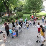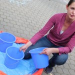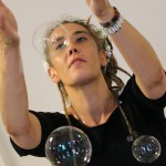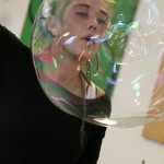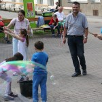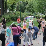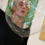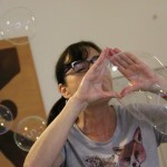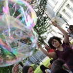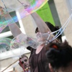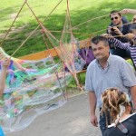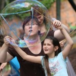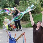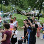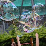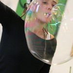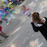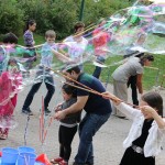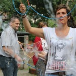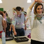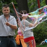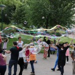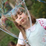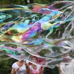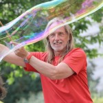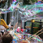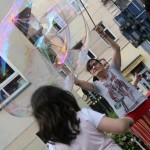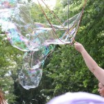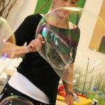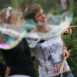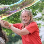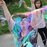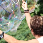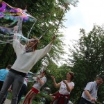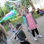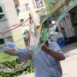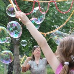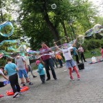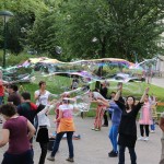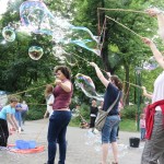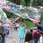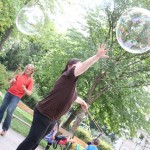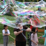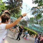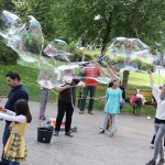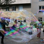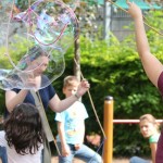 Natürlich lassen wir auch im Freien zusammen Riesenseifenblasen steigen.