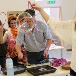 Zusammen stellen wir Seifenblaseninstrumente und Spielzeug für Kinder und Erwachsene her die dann mit nach Hause genommen werden.