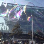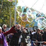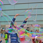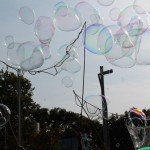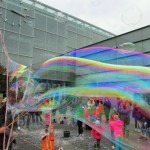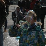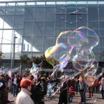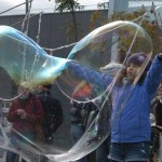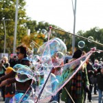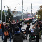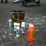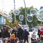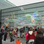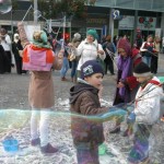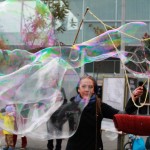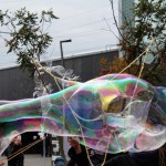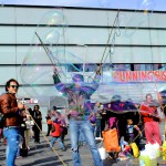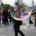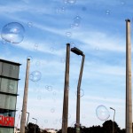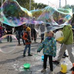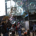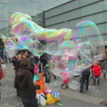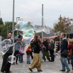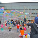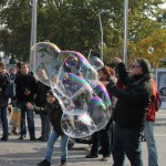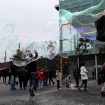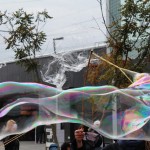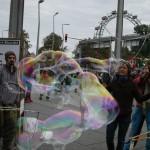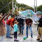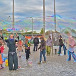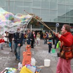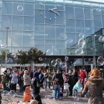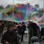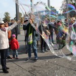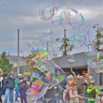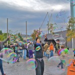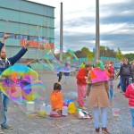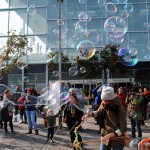 Wir stellten unter anderem 60l unserer Seifenblasenlauge & Stäbe zur Verfügung, es wurde gespielt, gelacht gestaunt und die graue Stadt für 2 Std bunt gemalt.