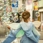 Verkleidet als Elfen und Fabelwesen mit authentischen Kostümen, verzaubern wir die Atmosphäre mit unserem bunten phantastischen Spiel um die Zauberblasen. Durch einen Leitherwagen mit dem wir unser Equitment transportieren, ist es uns möglich durch Gassen & Straßen über Plätze & belebte Orte zu wandern um an unterschiedlichen Standpunkten zu performen. Durch eine autarke Musikbox die am Leitherwagen installiert ist werden die Aufführungen mit spährischen Klängen untermalt die wir auch in die Performance miteinbauen.