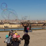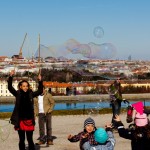 Seifenblasen unterwegs für eine friedlichere Welt.