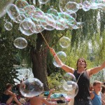 Bei knapp 40grad flogen die Seifenblasen am schönen grünen Gelände rund um den Badesee des Hotels.